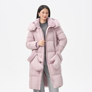 艾莱依新款两穿领型长款羽绒服女